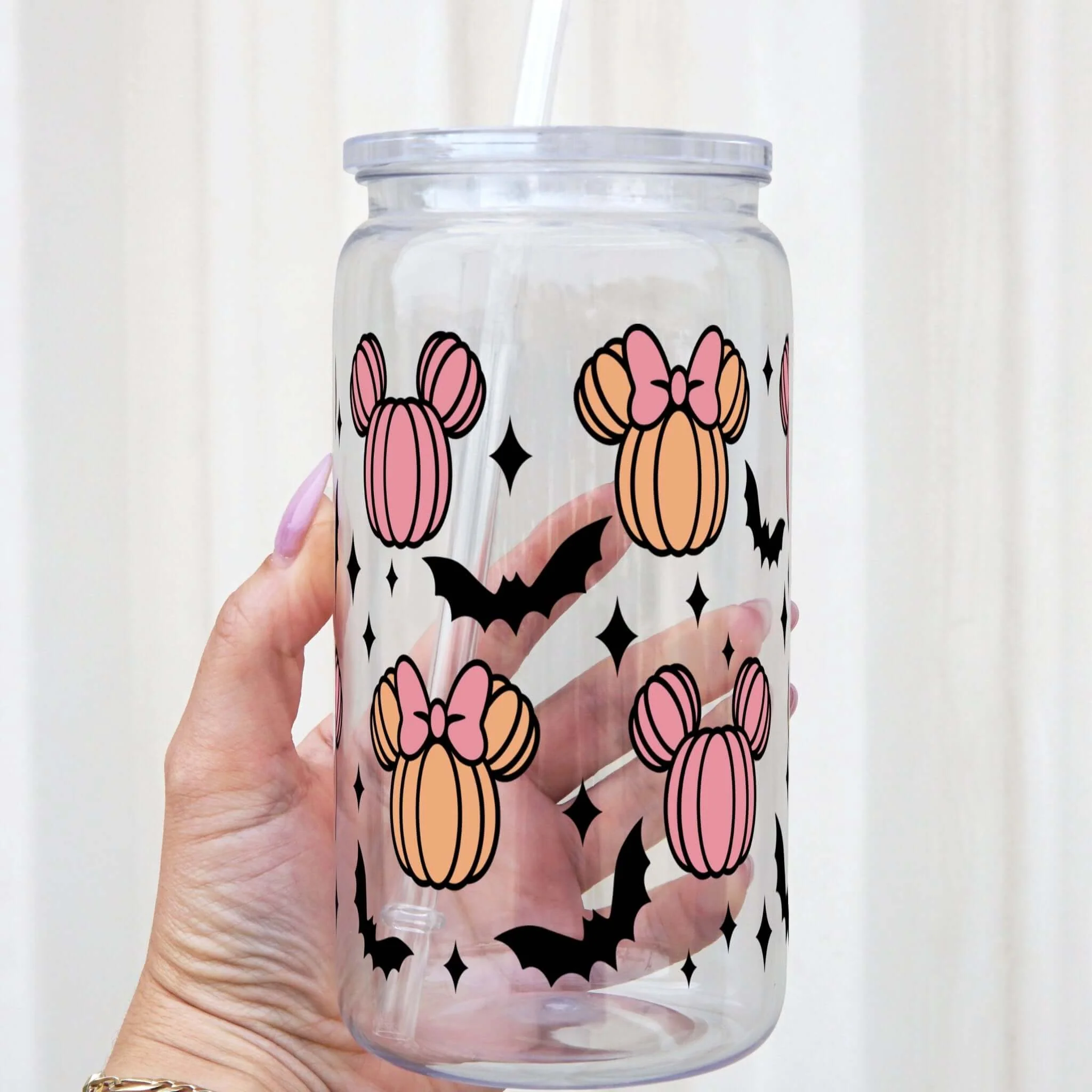 Halloween Mouse Pumpkins Cup With Lid and Straw